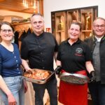 „Wenn es schon mal Lüngerl gibt, dann langt man zu“, hat sich Markus Friedberger am Samstagabend im Landgasthof Kirchberger Stub`n gedacht. Er ist mit sieben Spezln von der Feuerwehr Rappenhof bei Tittling nach Kirchberg gekommen und hat wie alle anderen Gäste die Gelegenheit genutzt, mehrmals das Buffet anzusteuern. Genauso war`s gedacht beim 3. Sautanz, zu dem die Wirtsleut Wilfried und Karina Maier und die Öko-Modellregion Passauer Oberland geladen hatten. Das Konzept, nach altem Brauch ein ganzes Schwein vom Rüssel bis zum Schwanz zu verarbeiten, stieß erneut auf Begeisterung. Am Freitag und Samstag kamen insgesamt 110 Gäste zum Schlemmen, und mehr hätten auch kaum Platz gehabt.